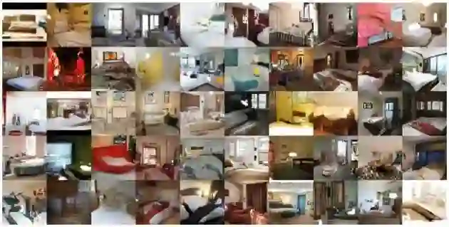 经典的GAN训练结果样例是卧室图片以及人脸图片: