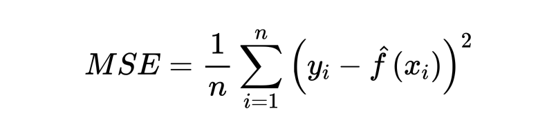 其中 y 代表观测到的真实值,f(x) 代表模型的预测值。如果 MSE 的值很小,说明模型拟合数据的能力强,反之同理。然而,当我们利用上式计算 MSE 的时候,用的都是我们已经用来训练模型的数据,所以上式更准确的名字应该是训练 MSE (train MSE)。