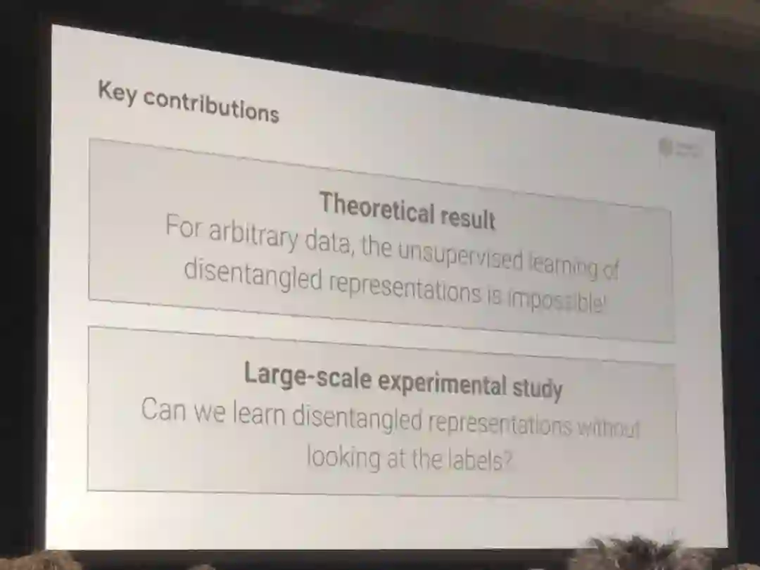 值得关注的是,ETH Zurich、谷歌大脑等机构的论文《挑战无监督学习中解耦表征的一般假设》提出了一个与此前学界普遍预测相反的看法:对于任意数据,拥有相互独立表征(解耦表征)的无监督学习是不可能的!在大会上,获奖论文的部分作者也现场进行了演讲。