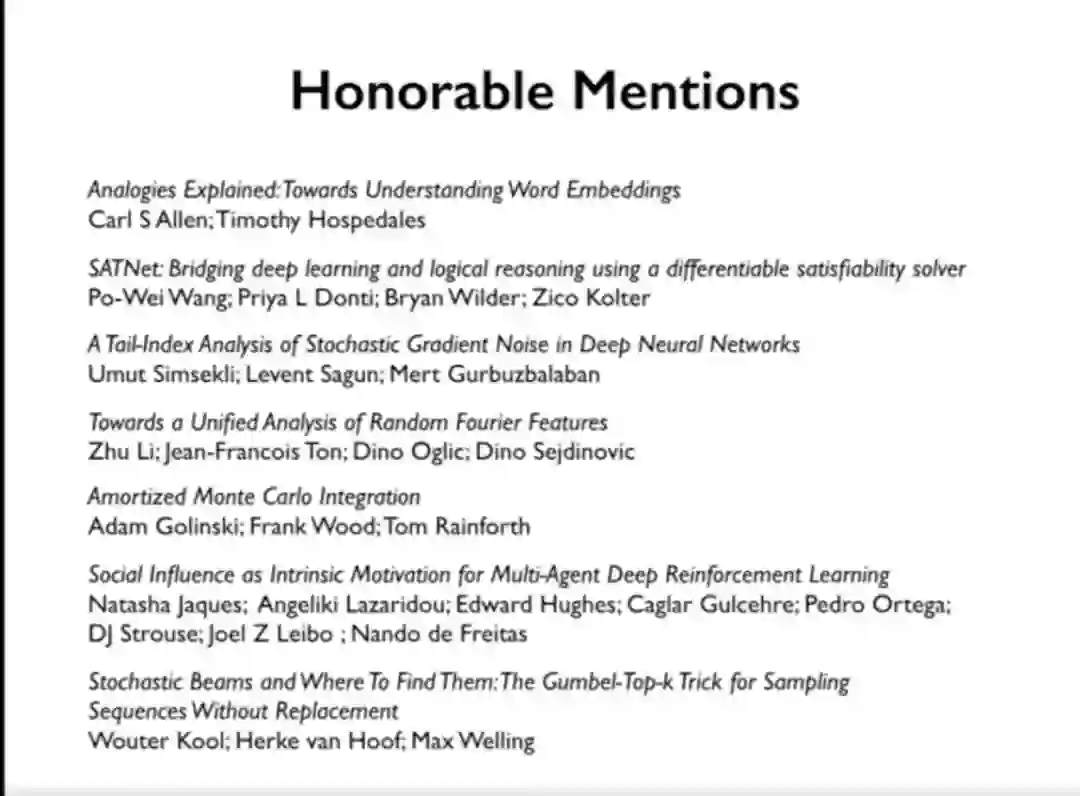 机器学习顶级会议ICML 2019(国际机器学习大会)已于6月9日在美国加州开幕。本届大会共收到3424篇论文投稿,其中774篇被接收(接收率为22.6%)。今日,大会放出了最佳论文。