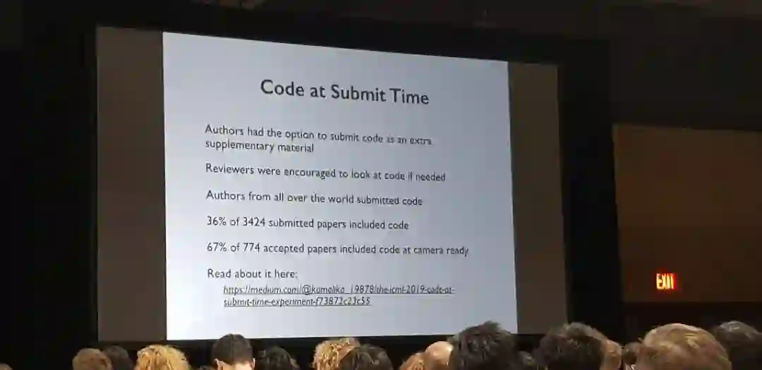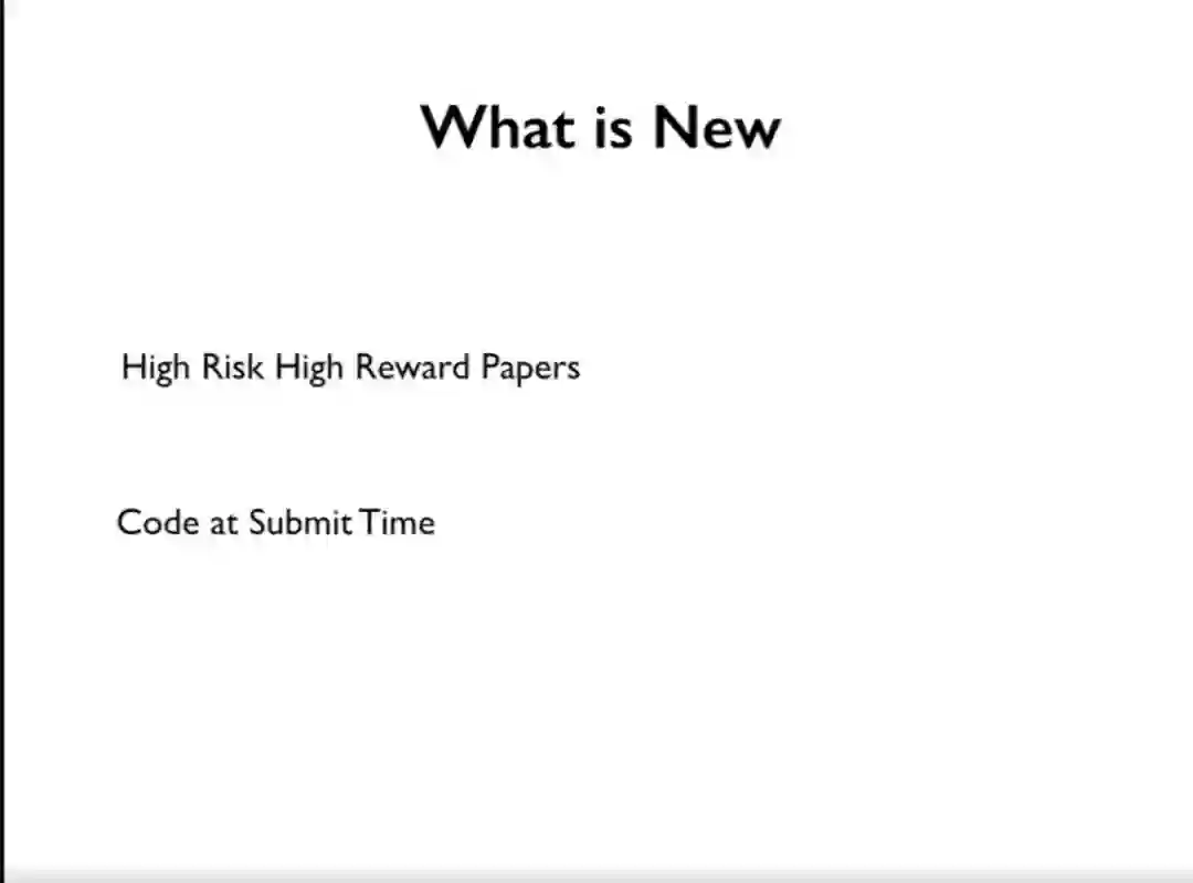 在公布了以上获奖内容之后,ICML 程序主席之一 Ruslan Salakhutdinov 介绍了此届 ICML 的两个新变化:高风险高奖励论文;提交代码。