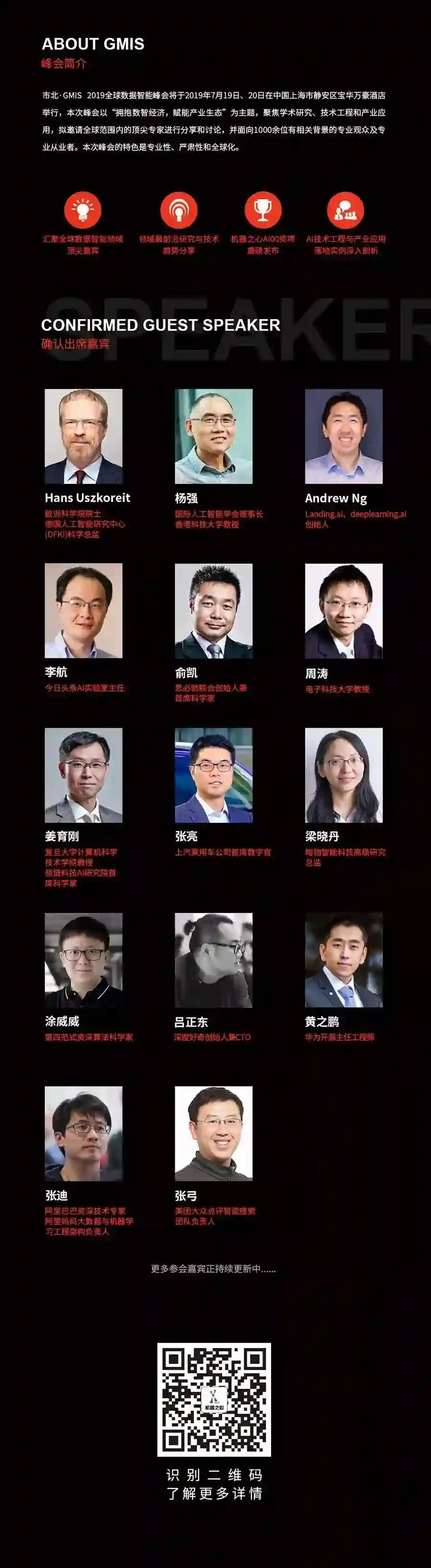 本次峰会设置主旨演讲、主题演讲、AI画展、「AI00」数据智能榜单发布、闭门晚宴等环节,已确认出席嘉宾如下: