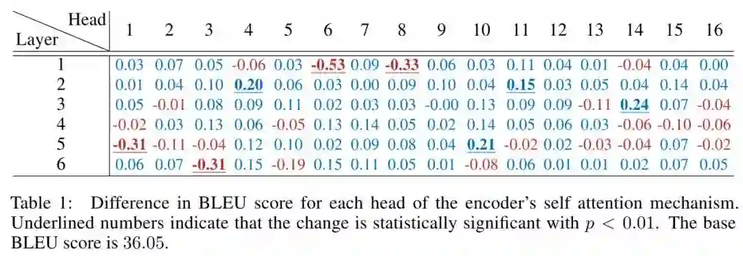在翻译任务中,只有8(/96)个头会对预测结果有显著影响,大多数头在预测时都是多余的。