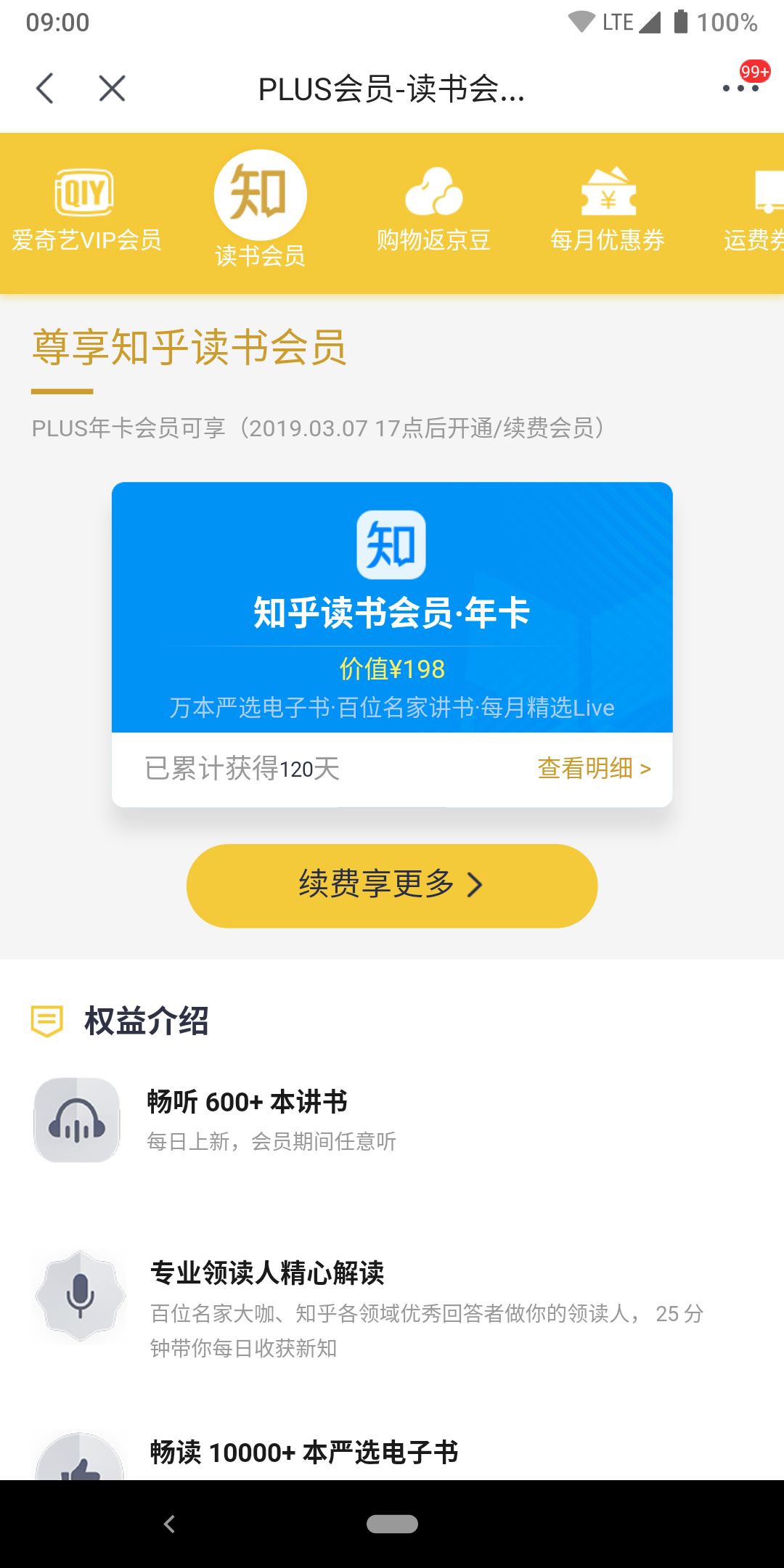 如果你在 3 月初续费过京东 PLUS,或者已经是老会员之一,你或许会注意到 PLUS 权益中多出了一个「价值 198/年」的「知乎读书会员」。其中 3 月 7 日后购买或续费可以直接享受,而老会员则可以通过抽奖的方式,获得与剩余期限等长的「读书会员」。