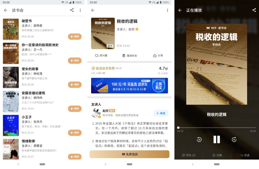 另外,「讲书」支持后台播放,同时在阅读知乎中的其他内容时,也能够继续播放。知乎的所有音频内容均支持这一特性,下文中就不再赘述了。