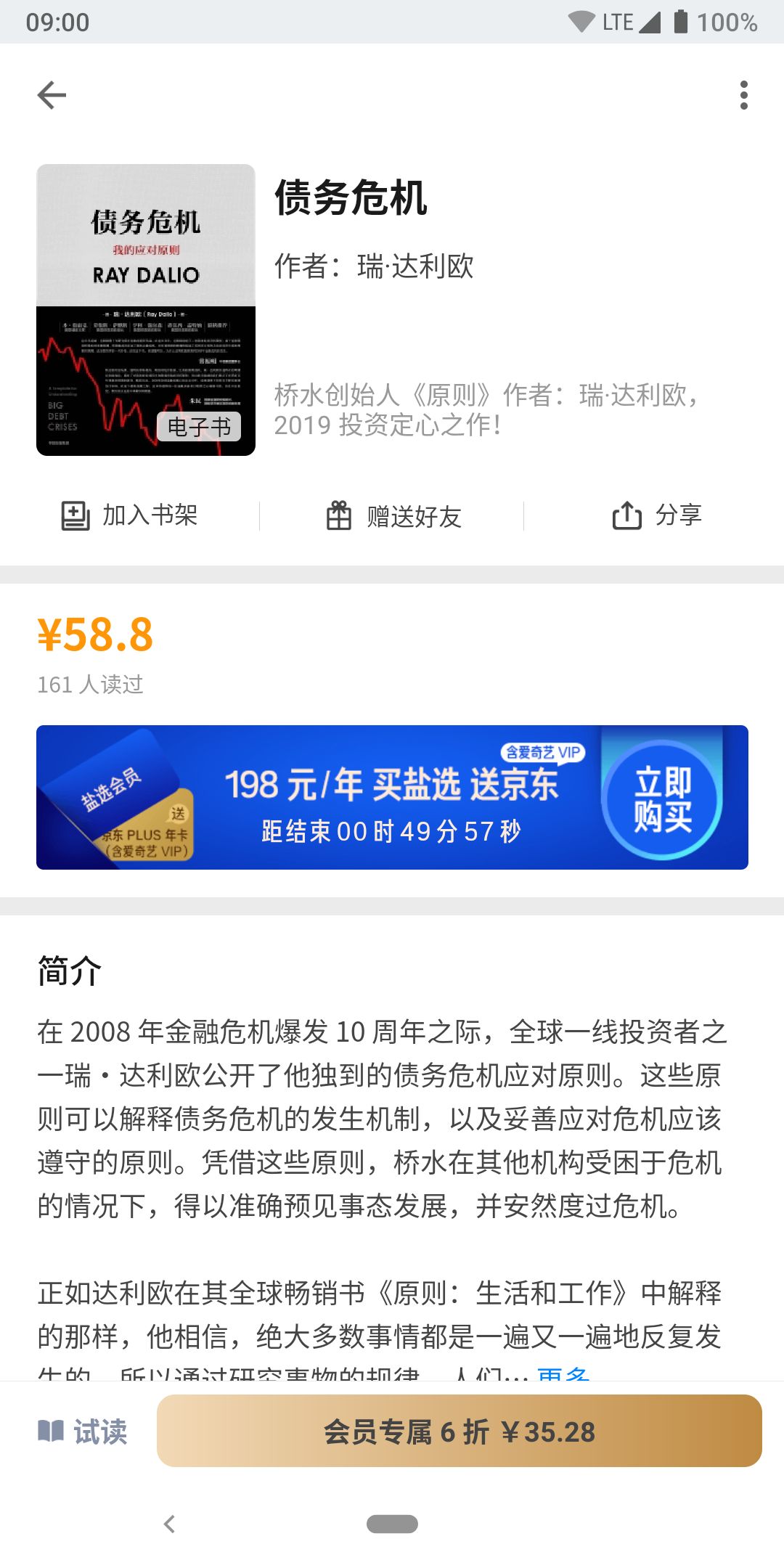 不支持会员免费的书籍,也可以选择以六折的优惠价购买;目前来看,这一优惠应该涵盖了所有书目,我简单查阅了一部分付费榜单中的书籍,基本上都支持免费阅读或 6 折购买。