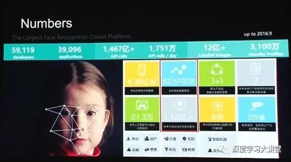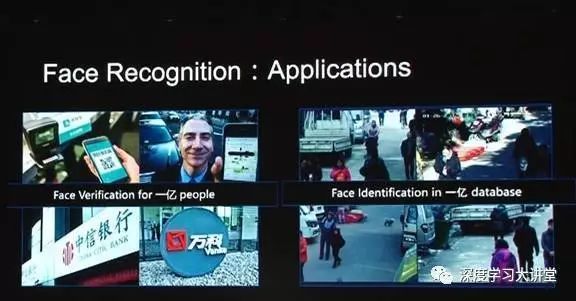 我们在Face++也做了一些应用,比如说1:1的验证。截至到去年,我们的互联网身份认证系统已经为超过一亿人提供过这样的1:1的人脸身份认证,而且我们在上亿规模的人脸数据库上,可以完成非常有意义的搜索。