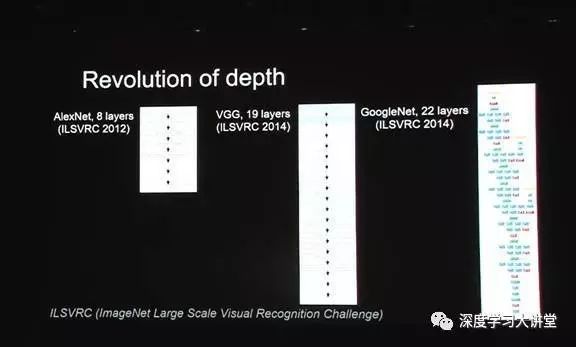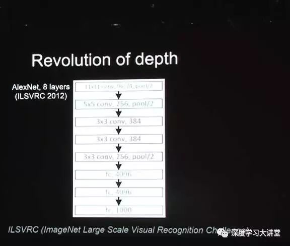 2012年,AlexNet用8层网络——这在当时已经被认为很深了,论文中专门有一段论证8层比5层好,证明深度是有用的。后来,有些人写了一些论文,试图用更浅的网络来逼近,试图来推翻这个深度有用的说法。可见,当时大家对深度是否真的有用还是存疑的。