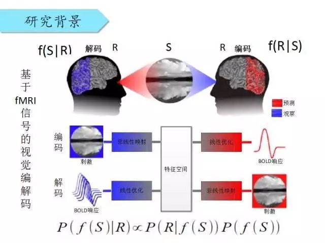 比如针对一个刺激S,大脑会有一个响应R,建立从刺激S到响应R的映射关系过程就是一个编码过程,当提供一个新的刺激时,就能够据此预测大脑的响应;反而言之,如果已知大脑响应,去推测受到什么样的刺激,这就是一个解码过程。解码过程可以看作是编码过程的一个逆过程。