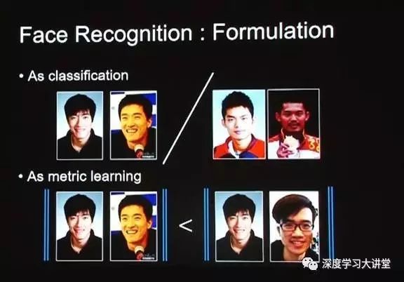 当然,图像识别最重要的一个应用是做人脸识别。人脸识别大致可以被当作两种任务来做,一种是classification ,一种是当metric learning。