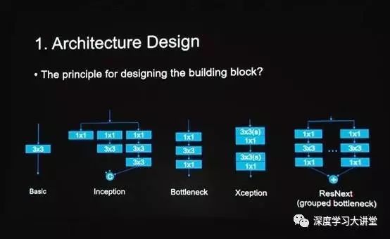 返回来再看这样的网络结构可以得知,其实它还有部分不是学习到的,而是手工设计的。现在,很多人的工作也都集中在如何手工设计这样的网络。当然,还有些新的方向可以探索,比如,用增强学习方法来学这个结构,但是目前还不太成熟。