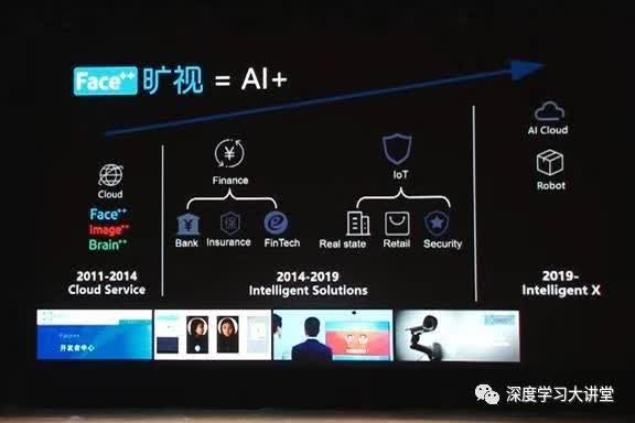 到今天,旷视科技已经发展到第五个年头了。开始的前几年,做的是一些面向用户、面向开发者的工作,最近几年的工作主要集中在泛金融和泛loT,希望将来能做更好的人工智能平台。