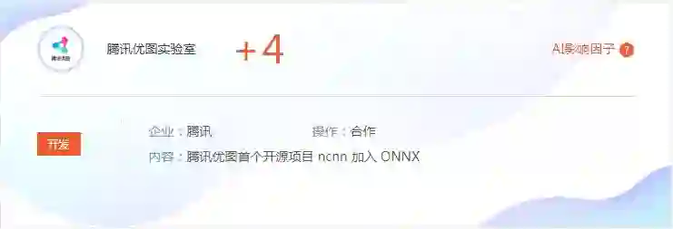 AI 科技评论按:腾讯优图首个 AI 开源项目 ncnn 目前已正式加入 ONNX,现已支持将 ONNX 文件转换为 ncnn 模型。本事件在雷锋网旗下学术频道AI科技评论数据库产品「AI 影响因子」(官网:http://t.cn/RF7O8Vb)中有相应加分。