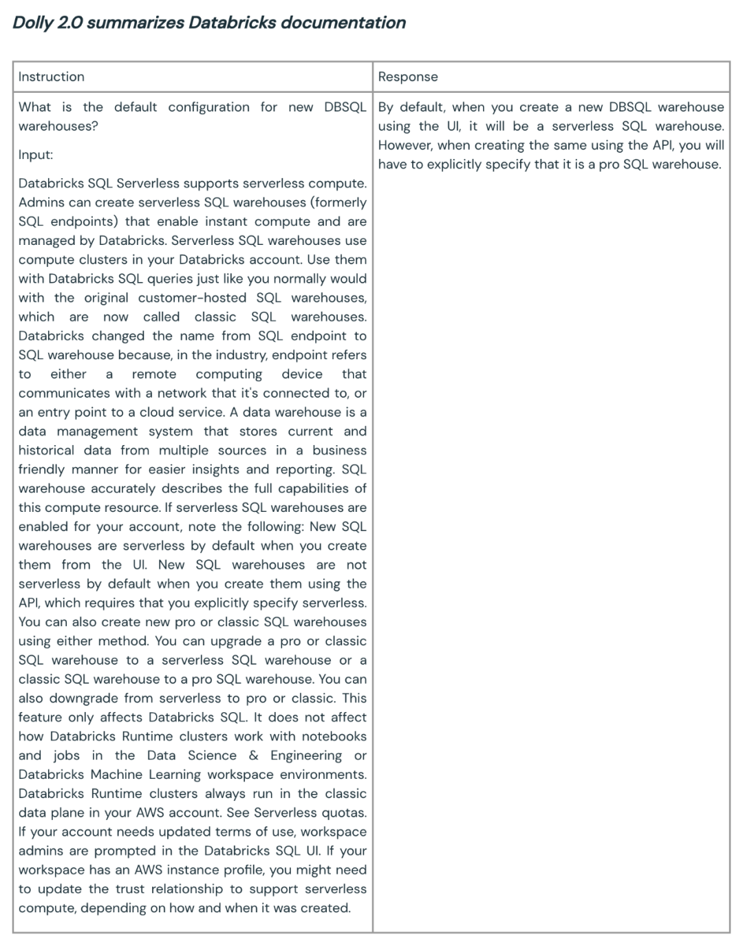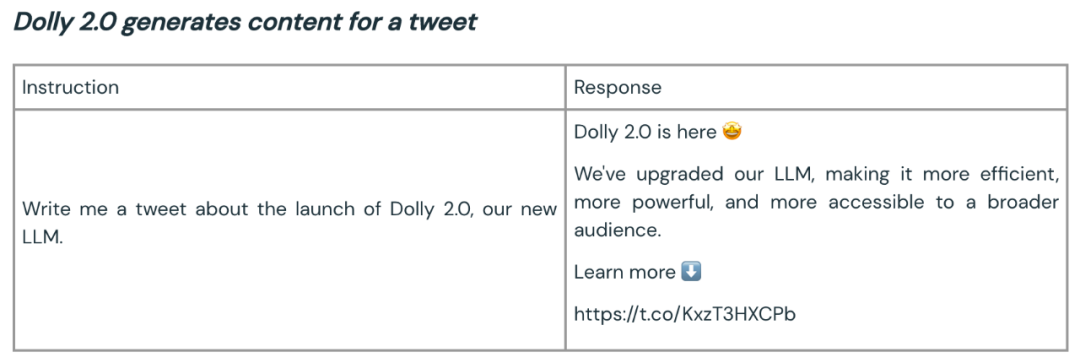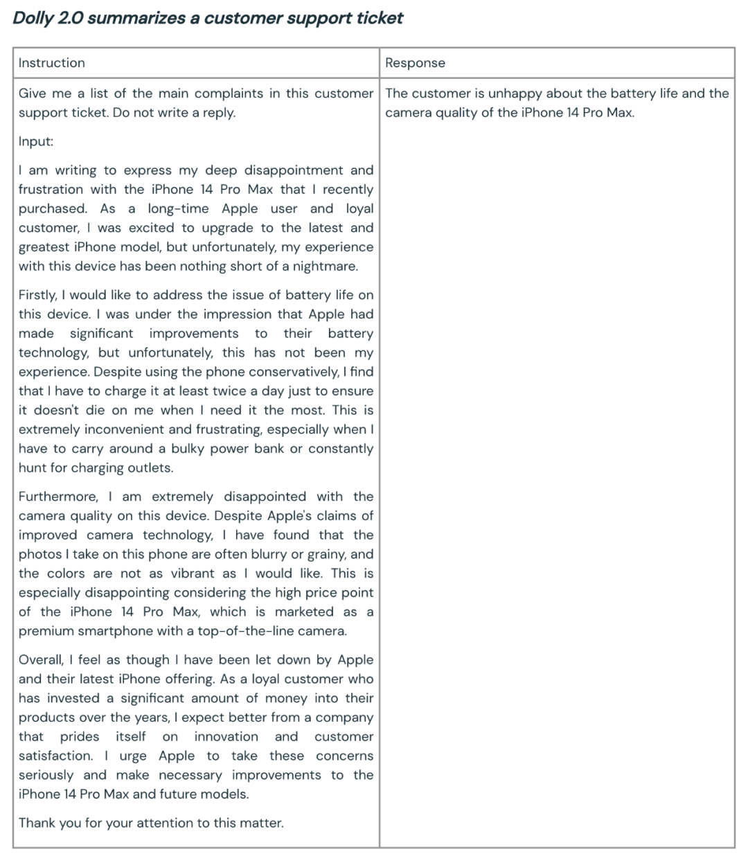以下是 Dolly 2.0 用于总结和内容生成的一些例子: