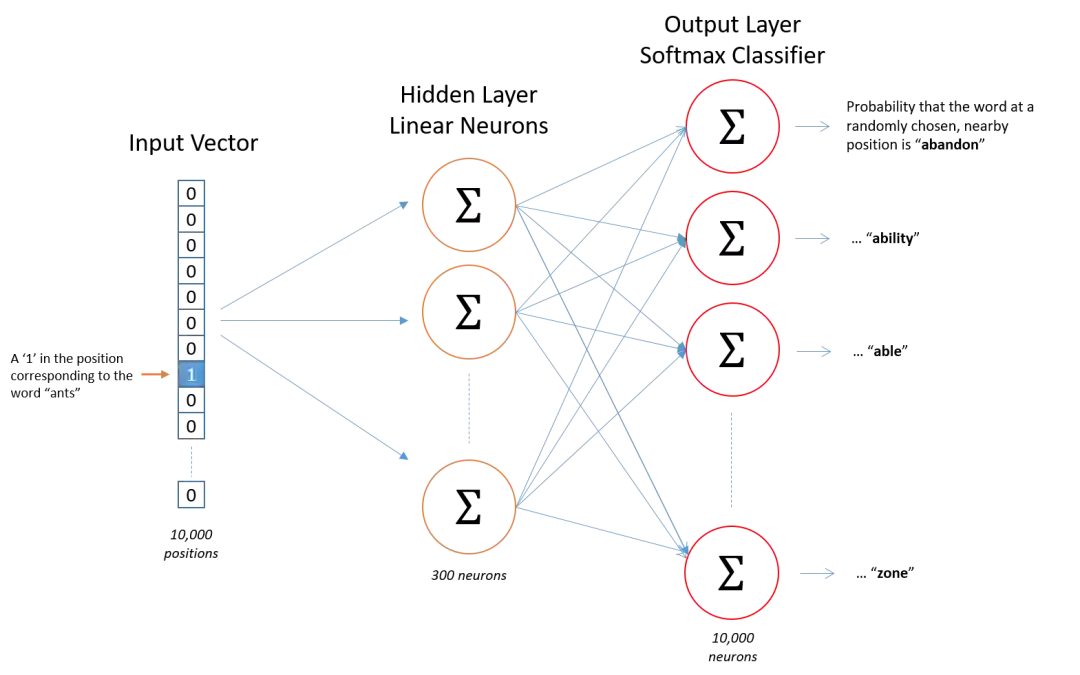 word2vec的skip-gram相信大家都非常熟悉了,这里就不再赘述,放一张图。