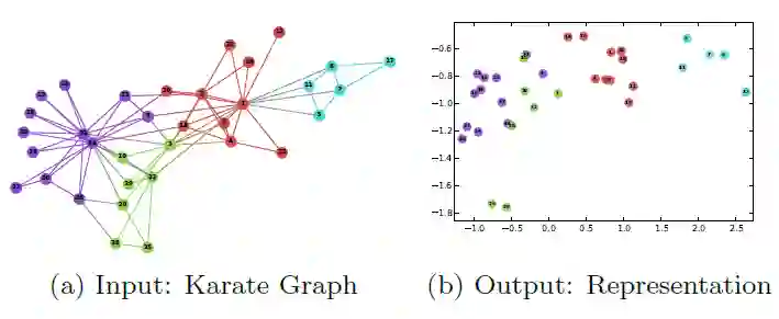 。毕竟万物皆可向量,得到向量之后能做的事情就非常多了。如下所示是论文中给出的Karate network例子。