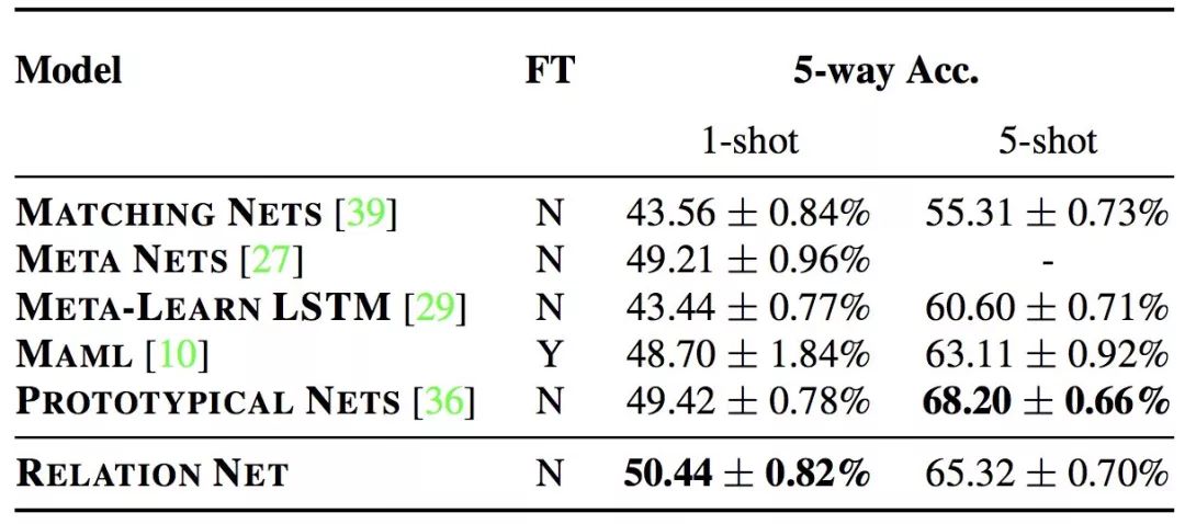 miniImagenet上的Few-shot分类精度很低。所有的准确性结果平均超过600次测试,并报告95%的置信区间。对于每项任务,都会突出显示性能最好的方法,以及置信区间重叠的其他方法。