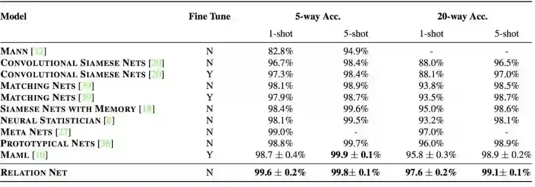 在少样本学习上,使用目前领域内都在使用的 Omniglot 和 MiniImagenet 作为基准数据集,而在零样本学习上,则使用广泛采用的 AwA 和 CUB 数据集进行测试。无论在哪个数据集上,提出的模型都取得了state-of-the-art或者相当好的结果: