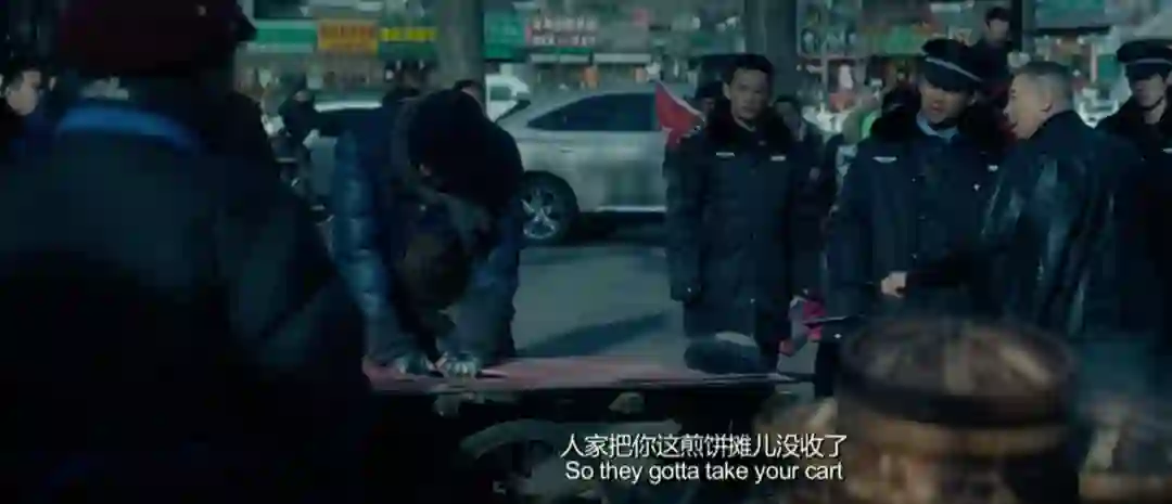 同样在大都市里,你经常在楼下小摊上买的煎饼果子,可能在某一天就突然消失不见。就连冯小刚的电影里,也出现了摆摊者被驱赶扣车的一幕。