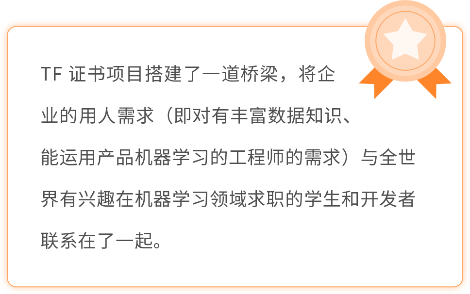 此项目旨在为全世界开发者提供机会,在一个日渐由 AI 驱动的全球就业市场中展示他们在机器学习领域的技能。作为一份基础证书,TF 证书专为希望通过使用 TensorFlow 构建和训练基本模型来展示实用机器学习技能的学生、开发者和数据科学家而设计。