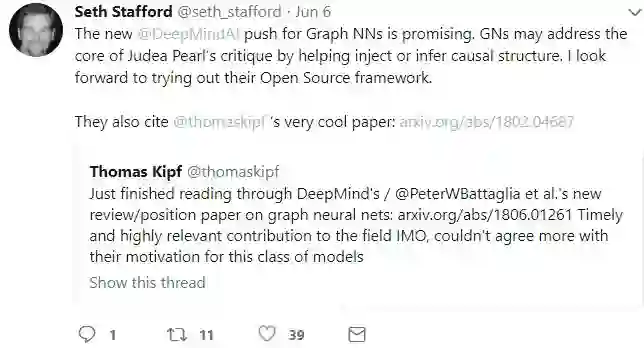 对此,一些知名的AI学者也对此做了点评。康纳尔大学数学博士/MIT博士后Seth Stafford说图神经网络(Graph NNs) 可能解决之前Judea Pearl提出的人工智能因果推断问题,贝叶斯网络之父Judea Pearl:要建立真正的人工智能,少不了因果推理。