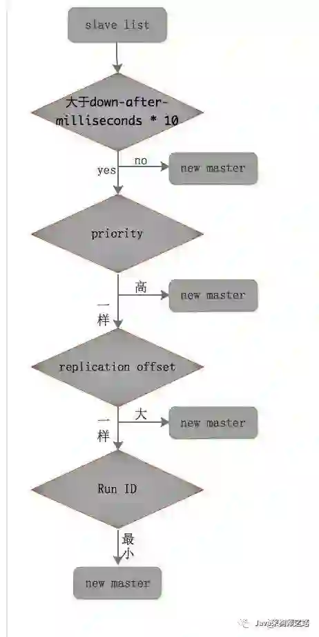 如果与master断开的时间超过down-after-milliseconds(sentinel配置) * 10秒加上从sentinel判定master不可用到sentinel开始执行故障转移之间的时间,就认为该slave不适合提升为master。