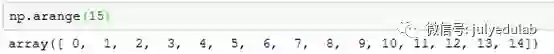 np.arange(15)#类似于python中的range,创建一个第一个维度为15的ndarray对象。