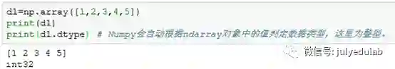 pint(d1.dtype) # Numpy会自动根据ndarray对象中的值判定数据类型,这里为整型。