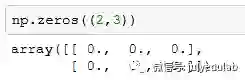 np.zeros((2,3)) #创建一个全零的,2x3的矩阵, 注意:传入参数是一个tuple,因此别忘了()