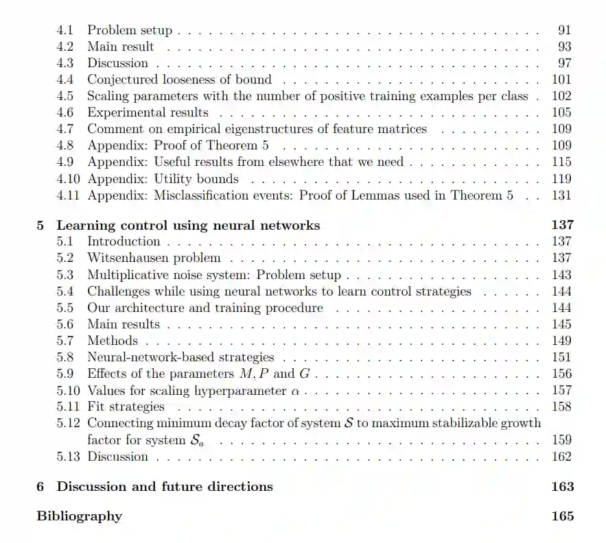 接下来,我们分析最小-ℓ2-范数插值器在高斯特征设定下的回归和二元分类问题的泛化误差。对于回归,我们插值实值标签,对于二元分类,我们插值二元标签。(事实证明,在充分的过参数化条件下,二值标签的最小范数插值与其他二值分类训练方法等价,如支持向量机或逻辑损失梯度下降法。)我们研究了一个渐近设置,其中特征的数量d与训练点的数量n成比例,且都是n, d→∞。在特征的双水平尖峰协方差模型下,证明了存在一种中间状态,在这种状态下,我们在分类任务上表现良好,但在相应的回归任务上表现不佳。然后,我们将分析扩展到多类分类设置,其中类的数量也与训练点的数量成比例,通过导出由一热编码标签的最小范数插值器引起的分类误差的渐近界。最后,为了理解我们如何学习在实践中很好地推广的模型,我们经验地研究了神经网络的应用,在硬控制问题中,最优解是未知的,线性解被证明是次优的非线性控制策略。通过智能设计神经网络架构和训练方法,利用我们对控制系统动力学的知识,我们能够更容易和鲁棒地学习性能良好的控制策略。