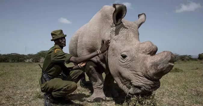 在今年3月,当45岁的雄性北白犀“苏丹”被照顾它的饲养员轻轻放下时,标志着大草原上最具有代表性的一种亚种的灭绝。虽然它还留下了两只雌性后代,但是除非出现奇迹般成功的体外受精,否则它们的彻底消失将只是时间问题。