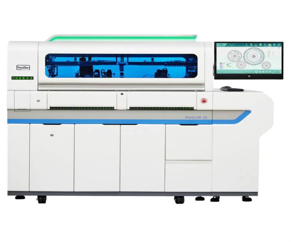 MAGLUMI® X8是新产业生物依靠自主创新于2018年成功研发出的全球测试速度最快的单模块化学发光仪器,单机测试速度600T/H。
