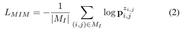 在 BEVT 的双路训练中,掩码图像建模和掩码视频建模的目标都是最大化掩码位置对应的 Groundtruth 视觉 token 的对数似然: