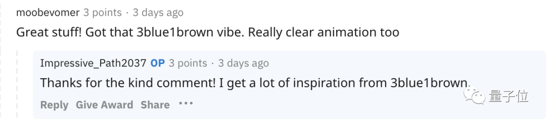在博主的回复中,也能看到他受到另一个数学可视化博主3blue1brown的启发。