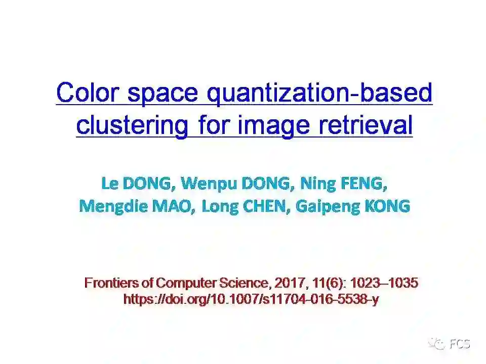 本文提出的框架受益于高效的计算,还可应用于大规模的web图像检索。实验结果表明,与利用传统HSV (Hue, Saturation, Value) 量化方法的基于分块主彩色图像检索系统相比,本文提出的系统在性能方面有显著增强。