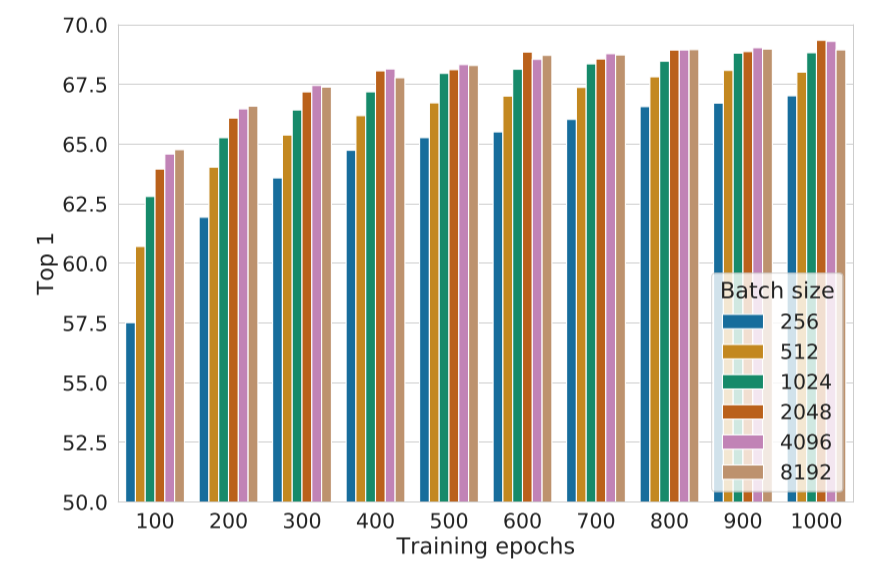 相信有些读者肯定有疑问,这种的做法是否有必要,负样例是否越多越好?SimCLR[2]的答案是,负样例越多越好,但是上述做法并没有必要,只要你有钱!