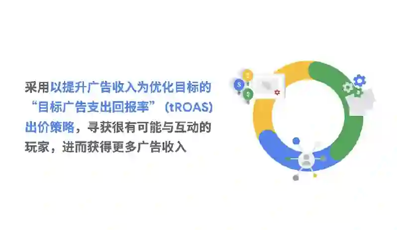 目标广告支出回报率 (tROAS) 出价策略以提升广告收入为优化目标,寻获很有可能与广告互动的玩家。