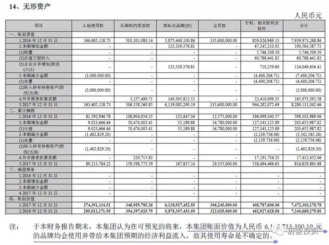 关于无形资产,我们看锦江股份的无形资产明细,75亿元的无形资产里,61.39亿元(占比82%)是商标及品牌。这块有什么问题呢?初善君印象里中国会计准则下是没有这个内容的,可能跟收购有关,问题在于初善君下表画出来的内容:本集团账面价值为人民币6,138,733,390.19元的品牌均会使用并带给本集团预期的经济利益流入,故其使用寿命是不确定的。即这部分无形资产跟商誉一样,不需要摊销,能带来经济利益流入,而不摊销,自然会放大企业的盈利。