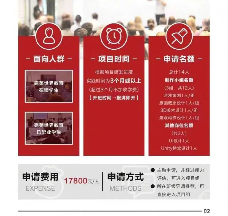 日前,一张“完美世界产业……实践项目”的图片引发网友关注。图片显示,该项目人员将与完美世界技术中心共同开发一款多人在线生存类网络游戏,申请名额14人,申请费用为17800元。参与项目之后,学员将进行3个月或更长时间的实践。此举被部分网友称为“付费上班”项目。