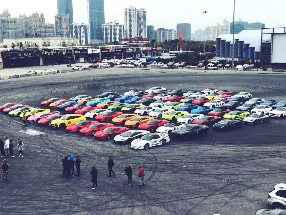 “2018年12月30日上午,上海博大汽车公园聚集了超过200辆包括劳斯莱斯、兰博基尼、法拉利等各色超跑、豪车,这是国内除车展外规模最大的一次大型线下真人汽车秀。下午,所有车辆兵分八路前往外滩、陆家嘴、静安寺、徐家汇等沪上地标性景点和商圈,路上遇到幸运观众,车会停下,载着观众兜风。