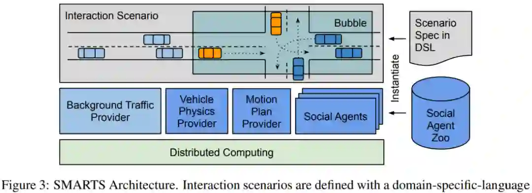 ,该平台支持多样化道路使用者行为模型的训练、积累和使用。这些反过来又可以用于创建日益真实和多样化的交互,从而能够对多智能体交互进行更深更广泛的研究。