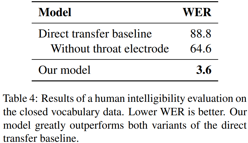 。尽管此前已经有利用有声语音期间收集的 EMG 训练语音合成模型的研究,但该研究首次利用了在无声发音期间收集的 EMG 进行训练。