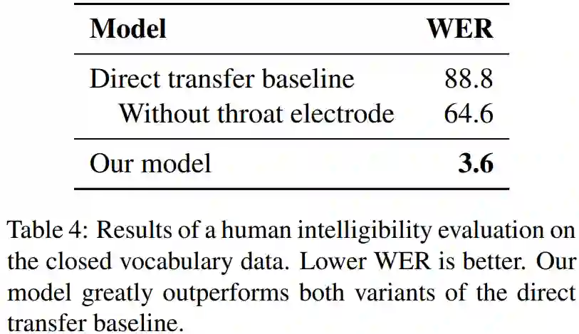具体而言,研究者提出了一种通过将音频目标从有声信号转换为无声信号来对无声 EMG 进行训练的方法。与仅使用有声数据进行训练的基线方法相比,该方法显著提升了从无声 EMG 中生成音频的清晰度。在某种数据条件下,该方法将转录词误差率从 64% 降至 4%;另一种数据条件下,转录词误差率从 88% 降至 68%。为了促进这一研究任务的进一步发展,该研究已经共享了无声和有声面部 EMG 度量的新数据集。