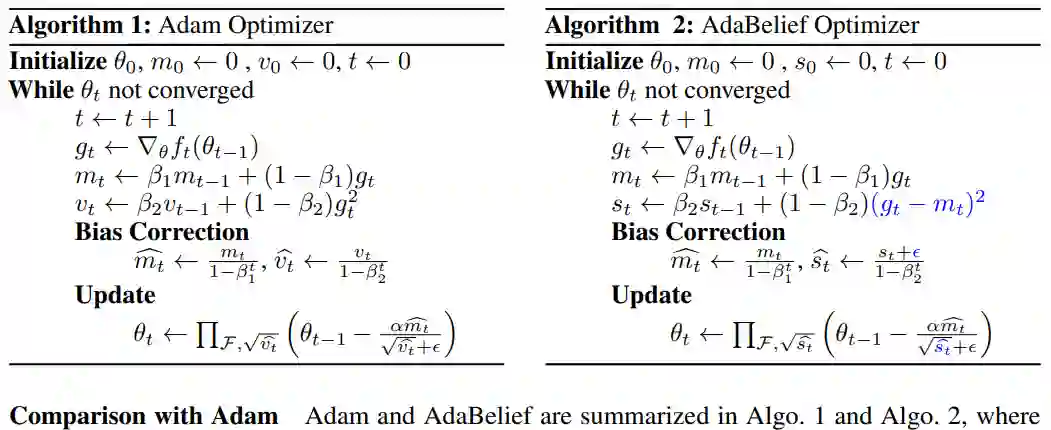 本文提出新的优化器 AdaBelief,根据当前梯度方向上的「belief」来调整步长,将嘈杂梯度的指数移动平均(EMA)当作下一步的梯度预测