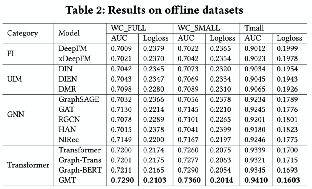 在离线任务上,我们在微信公众号平台视频推荐任务和 Tmall 数据上测试了 NI-CTR 模型。
