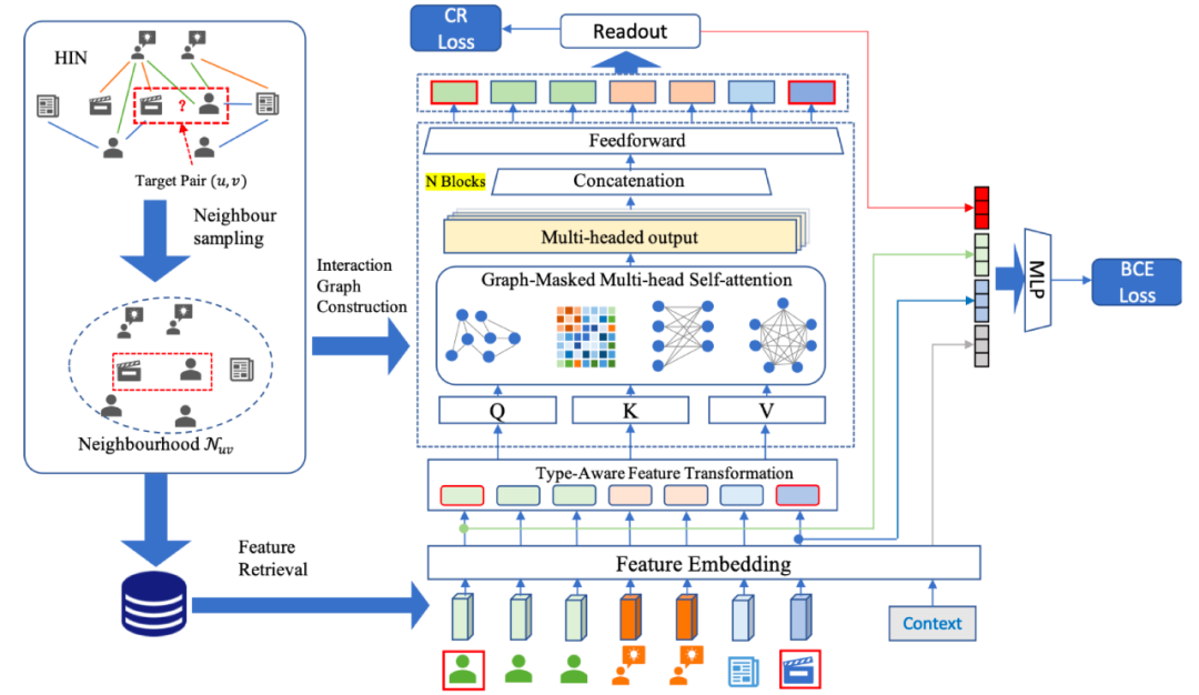 为了有效地从本地邻域节点中学习用户 - 物品的点击偏好,除了存在在 HIN 中的交互信息,我们还从隐式建模的角度去考虑