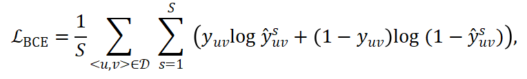 ![]() , 如第 2.3.2 节所述, 我们可以为每个候选用户 u 和 项目 v 对抽取一批邻近节点