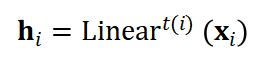 ![]() 中的节点 i, 由于不同类型的节点具有不同的特征维度, 因此具有不同的特征空间,这里,为了能够统一处理异质节点的情况,我们使用类型感知的特征转换层将它们嵌入到一个统一的空间:
