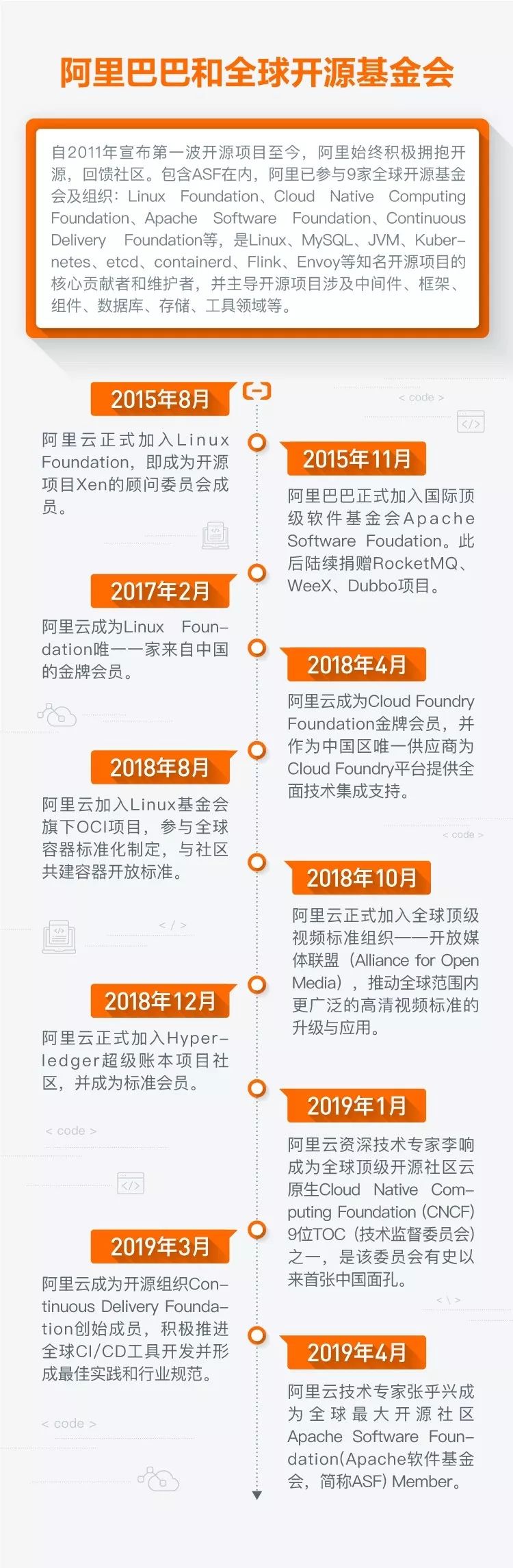 事实上,阿里巴巴与 ASF 渊源颇深。2015 年,阿里巴巴正式加入 ASF,此后陆续向社区捐赠 RocketMQ、WeeX、Dubbo 项目。2017 年 9 月,RocketMQ 从 Apache 社区正式毕业,成为 Apache 顶级项目。目前,Dubbo 项目也即将毕业。