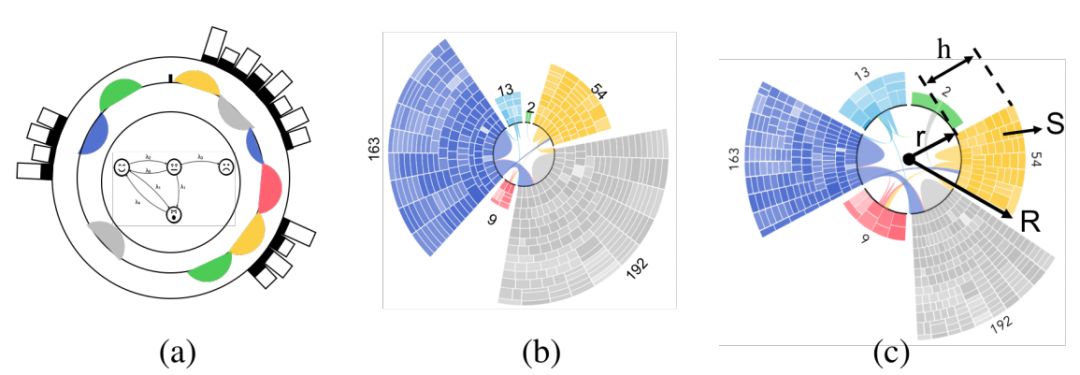 研究者设计了一个摘要视图,让老师可以看到学生情感的静态和动态演变数据。图(a)显示的是学生的情感档案,用于展示学生的情感分布(静态摘要);图(b)显示的是学生的情感变化曲线(动态摘要)。
